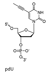 Propynyl replaces the methyl group on uracil (pdU) C-5 position